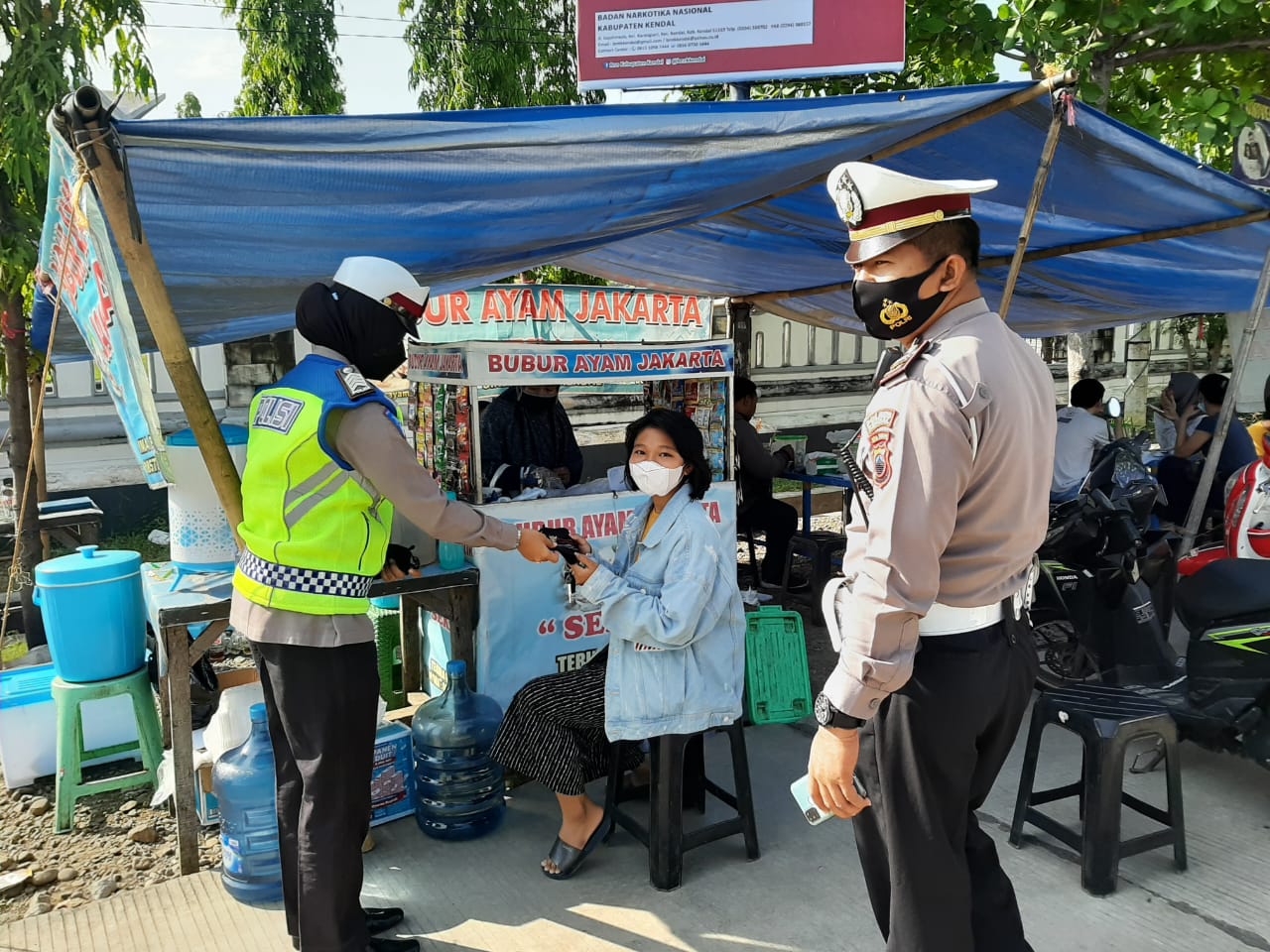 PENJURU.ID | Kendal – Satlantas Polres Kendal bagikan masker gratis pada hari Sabtu pagi (29/5/2021) di Stadion baru Kebondalem Kendal.