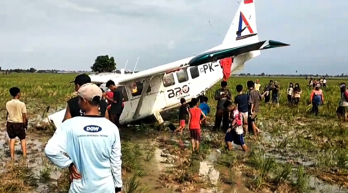 Pesawat yang terbang dari Tangerang menuju Cirebon tersebut membawa lima orang awak. Berdasarkan informasi sementara yang diterima Polres Karawang, seluruh awak dinyatakan selamat.