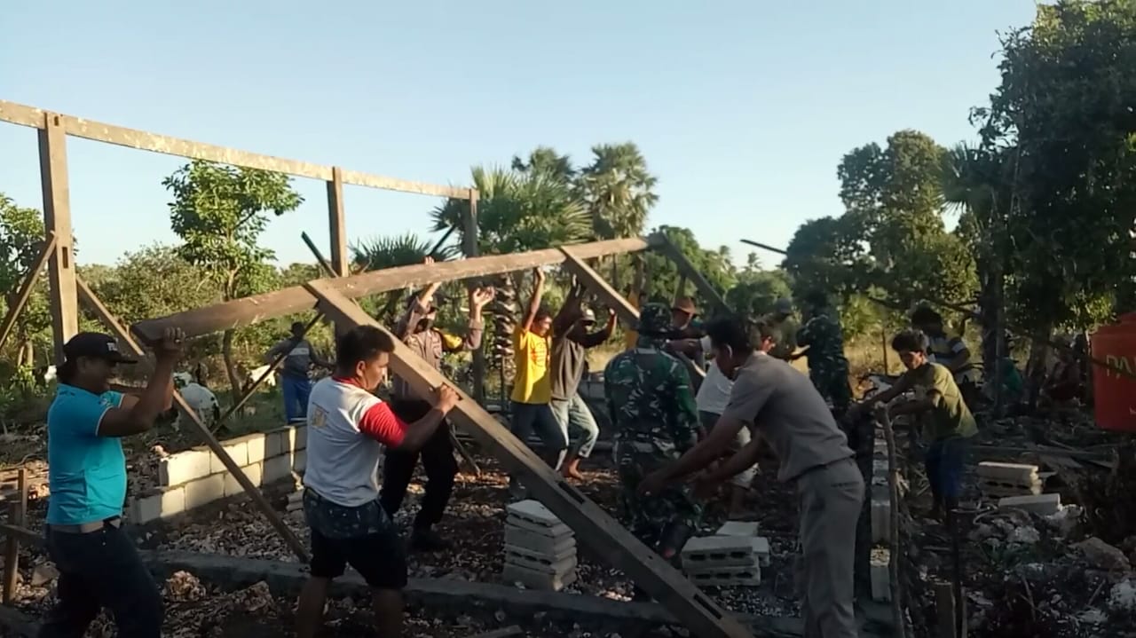 PENJURU. ID | Jeneponto – Giat Bhabinkamtibmas Polsek Binamu Polres Jeneponto di hari pertama pembangunan bedah rumah yang dilaksanakan tiga Pilar Kamtibmas Kelurahan Balang Beru yang berlokasi di lingkungan Papanloe Kelurahan Balang Beru Kecamatan Binamu Kabupaten Jeneponto, Selasa (18/08/2020) Pukul 10.00 Wita.