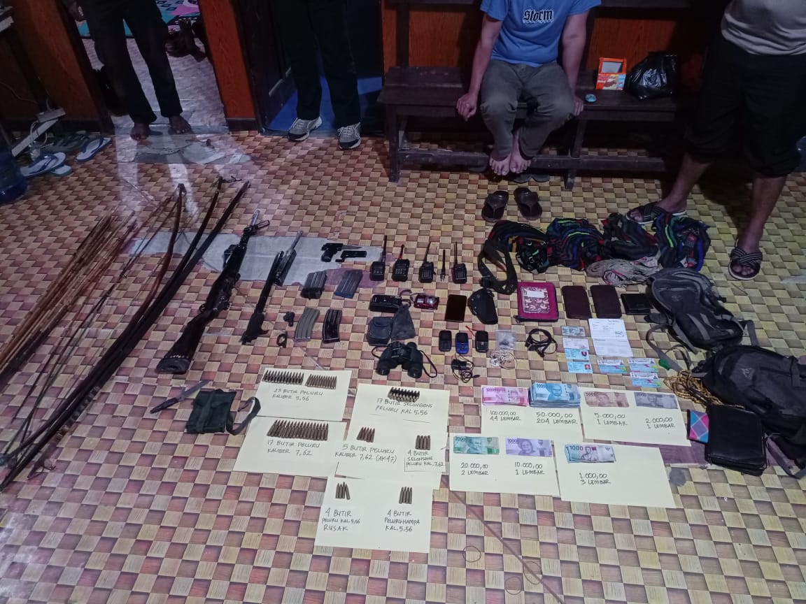Adapun barangbukti yang berhasil ditemukan di TKP kontak tembak yang dimiliki oleh Pelaku Kelompok Kriminal Teroris Bersenjata, antara lain :