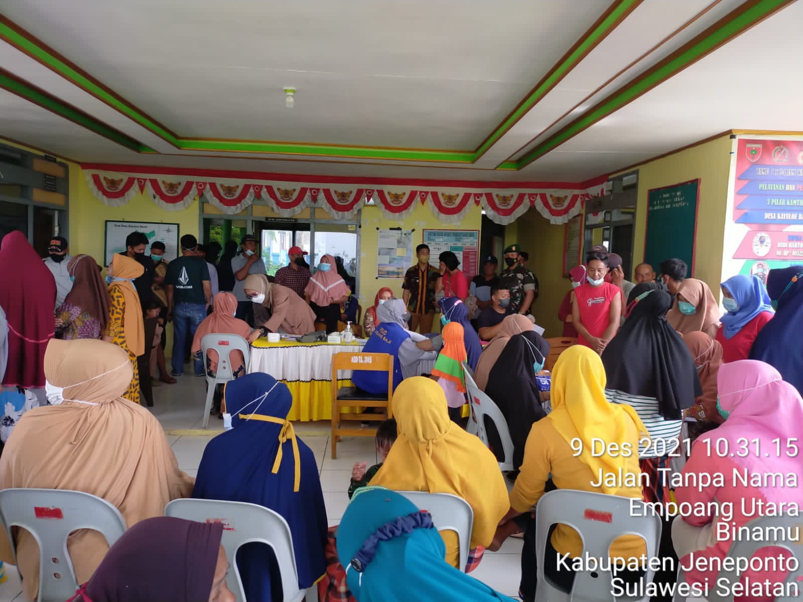 PENJURU. ID | Jeneponto – Bertempat di kantor Desa Kayuloe Barat Kecamatan Turatea Kabupaten Jeneponto kembali dilakukan kegiatan Vakainasi kepada warga, Kamis (9/12/2021)