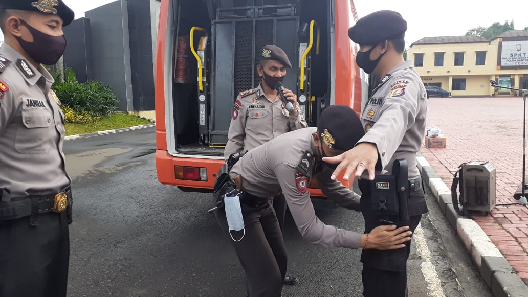 Latihan tersebut dilakukan di Halaman Mapolda Banten dan diikuti oleh sebanyak 55 personel, Selasa, (09/06/2020).