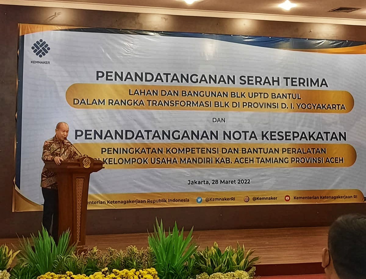 PENJURU.ID | Jakarta – Pemkab Aceh Tamiang resmi menggandeng Ditjen Pembinaan Pelatihan Vokasi dan Produktivitas (Binalavotas) Kementerian Tenaga Kerja untuk meningkatkan kompetensi pekerja sekaligus menampung bantuan usaha mandiri. Kepastian ini diperoleh setelah Nota Kesepakatan kerja sama ini ditandangani Bupati Aceh Tamiang, Mursil, SH, M.Kn, bersama Dirjen Binalavotas, Budi Hartawan, di Jakarta, Senin (28/3/22) kemarin.