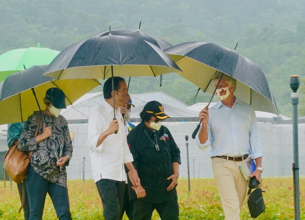 “Kita ingin menunjukkan bahwa Indonesia serius dalam menangani dampak dari perubahan iklim dan kita tunjukkan nursery center ini yang bisa setahun memproduksi kurang lebih 12 juta bibit,” ujar Presiden dalam keterangannya selepas peninjauan.