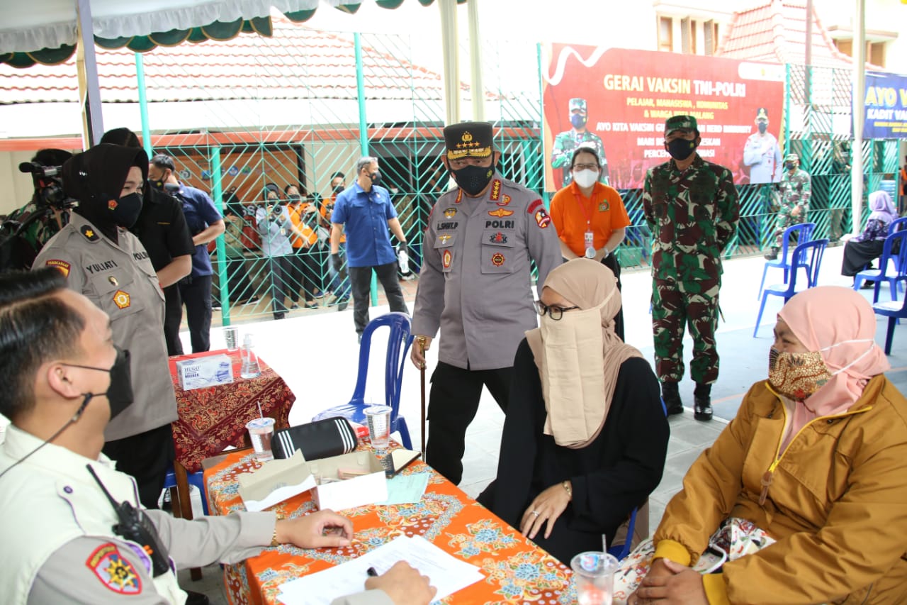 Dalam kesempatan ini, Panglima dan Kapolri menyapa langsung secara virtual beberapa wilayah yang menggelar vaksinasi serentak. Mereka menanyakan langsung soal target dan capaian terkait dengan kegiatan tersebut.