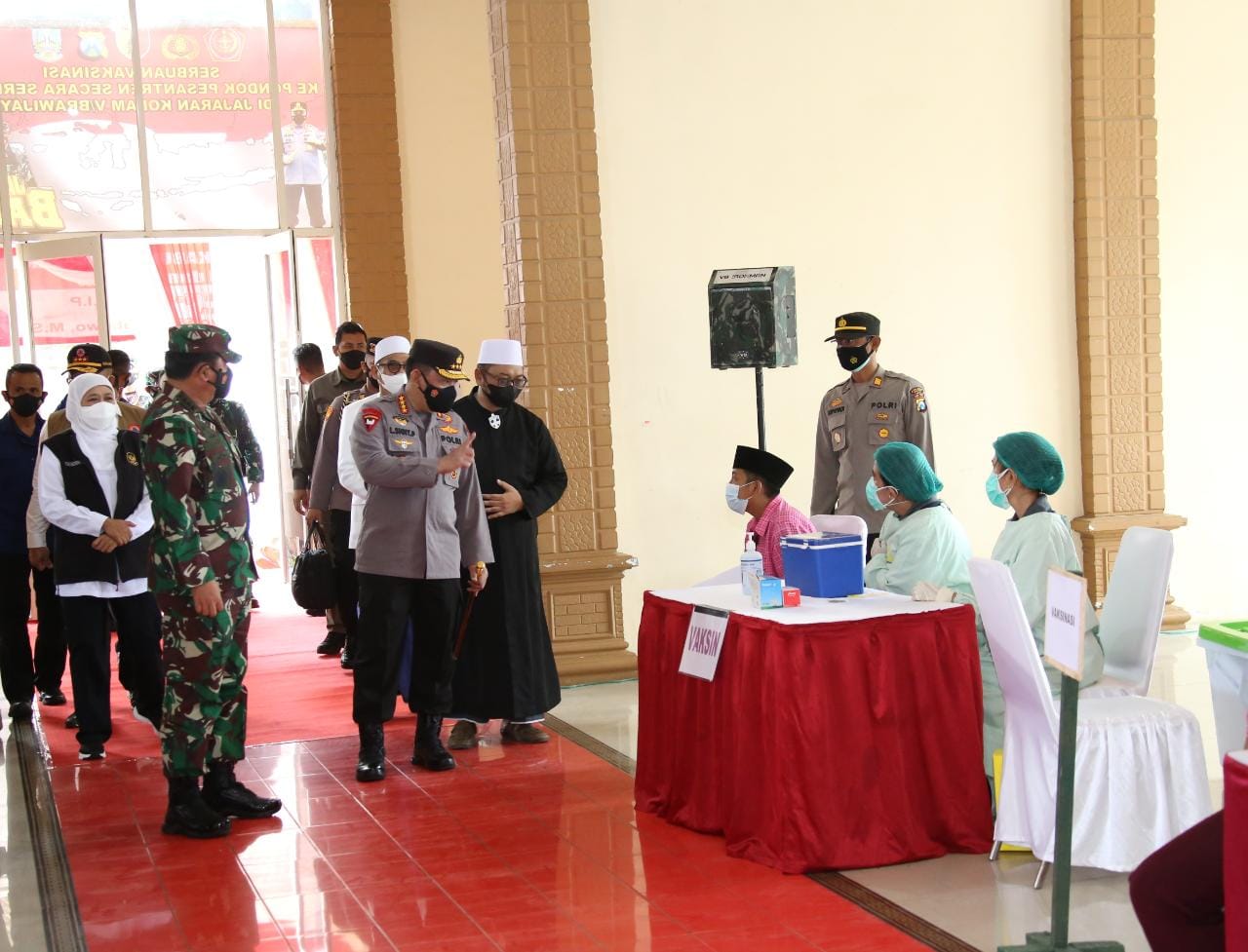 PENJURU. ID | Jatim – Panglima TNI Marsekal Hadi Tjahjanto dan Kapolri Jenderal Listyo Sigit Prabowo meninjau kegiatan vaksinasi massal serentak 114 titik di 38 kab/kota Provinsi Jawa Timur (Jatim), Sabtu (11/9/2021).