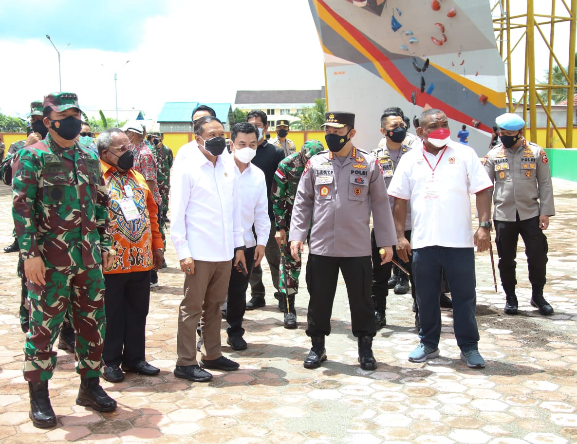 PENJURU. ID | Papua – Panglima TNI Marsekal Hadi Tjahjanto, Kapolri Jenderal Listyo Sigit Prabowo dan Menpora Zainudin Amali melakukan peninjauan venue pertandingan panjat tebing dan biliar PON ke-XX di Kabupaten Mimika, Papua, Sabtu (28/8/2021).