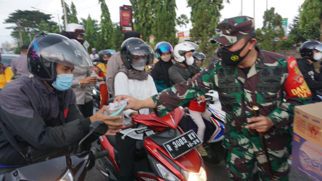 PENJURU.ID | PURBALINGGA – Sejumlah anggota TNI-Polri dari Kodim 0702/ PurbaIingga dan Polres Purbalingga melaksanakan kegiatan simpatik membagikan takjil dan masker bagi masyarakat. Kegiatan dilaksanakan di sejumlah lokasi wilayah Kabupaten Purbalingga, Selasa sore, (4/5/2021).