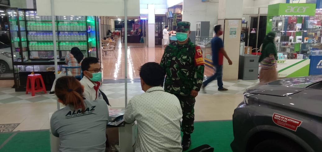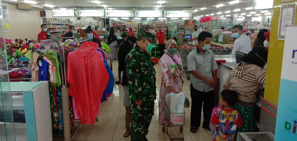 PENJURU.ID | Probolinggo – Koramil 0820/12 Kraksaan memantau secara langsung penerapan protokol kesehatan dimasa pemberlakuan pembatasan kegiatan masyarakat (PPKM) level II di sejumlah tempat perbelanjaan di wilayah teritorialnya.