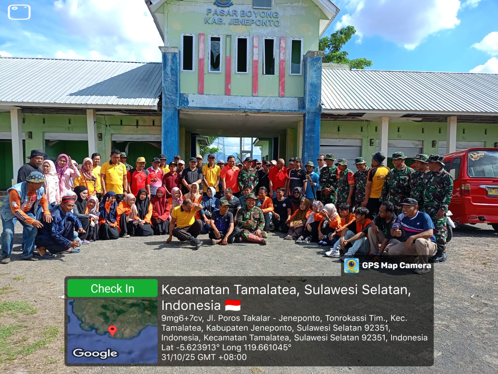 PENJURU.ID | Jeneponto – Tripika Kecamatan Tamalatea melaksanakan kegiatan Jumat Bersih yang dipusatkan di Pasar Boyong, Kelurahan Tonrokassi, Kecamatan Tamalatea, Kabupaten Jeneponto, Jumat (31/10/2025) pagi. Kegiatan ini melibatkan jajaran pemerintah kecamatan, TNI dan Polri, serta masyarakat setempat.