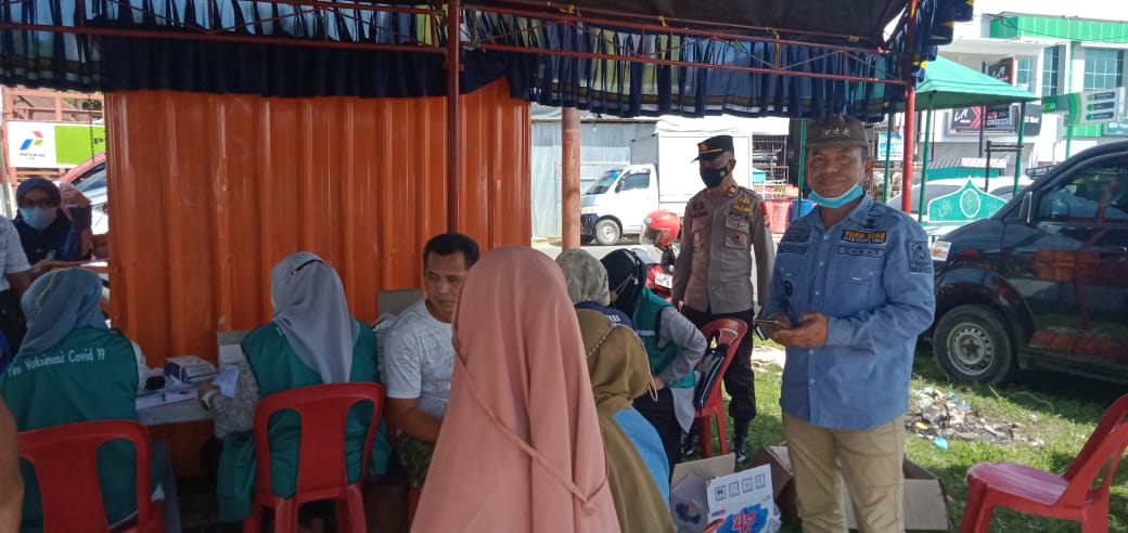 PENJURU. ID | Jeneponto – Demi capain target vaksinasi, tripika tarowang kawal pemberian vaksinasi bagi para pedagang dan pengunjung pasar.