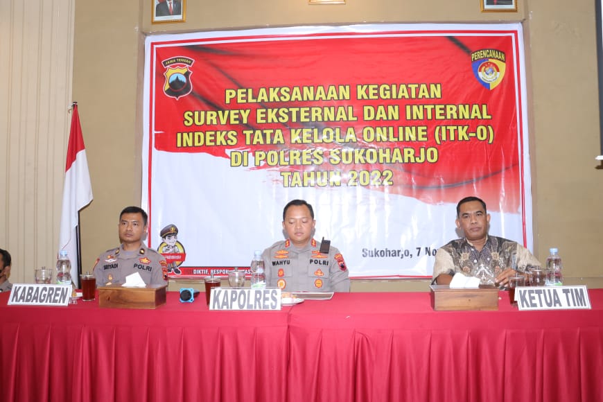 Sementara itu, Kapolres Sukoharjo AKBP Wahyu Nugroho Setyawan, mengatakan bahwa ITK-O ditujukan untuk pengukuran pada setiap satuan fungsi secara menyeluruh dan terus-menerus agar sesuai dengan roadmap pengukuran kinerja tata kelola Polri secara online. Dimana hasil survey menjadi tolok ukur Polri dalam mengelola organisasi, sehingga ke depan tata kelola organisasi Polri menjadi lebih baik dan membangkitkan semua pihak.