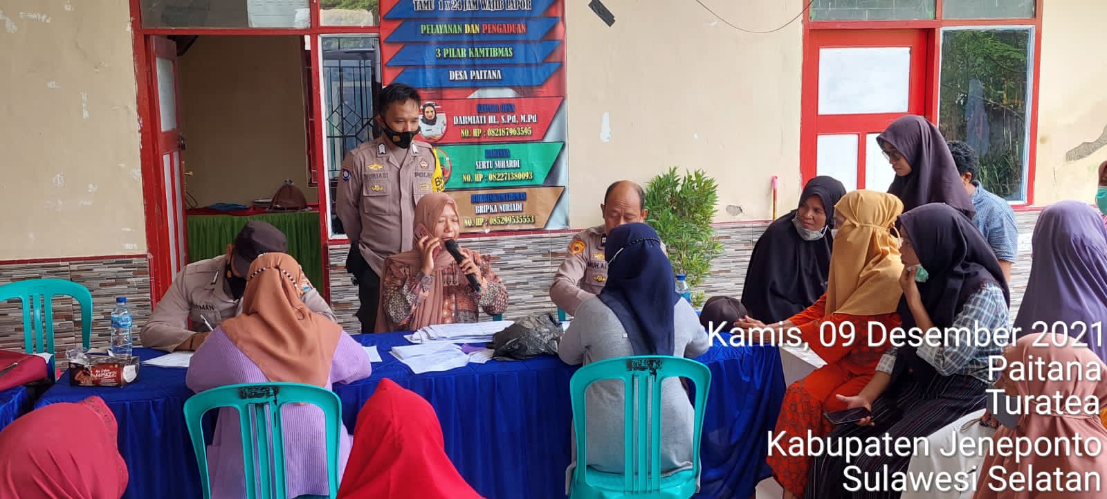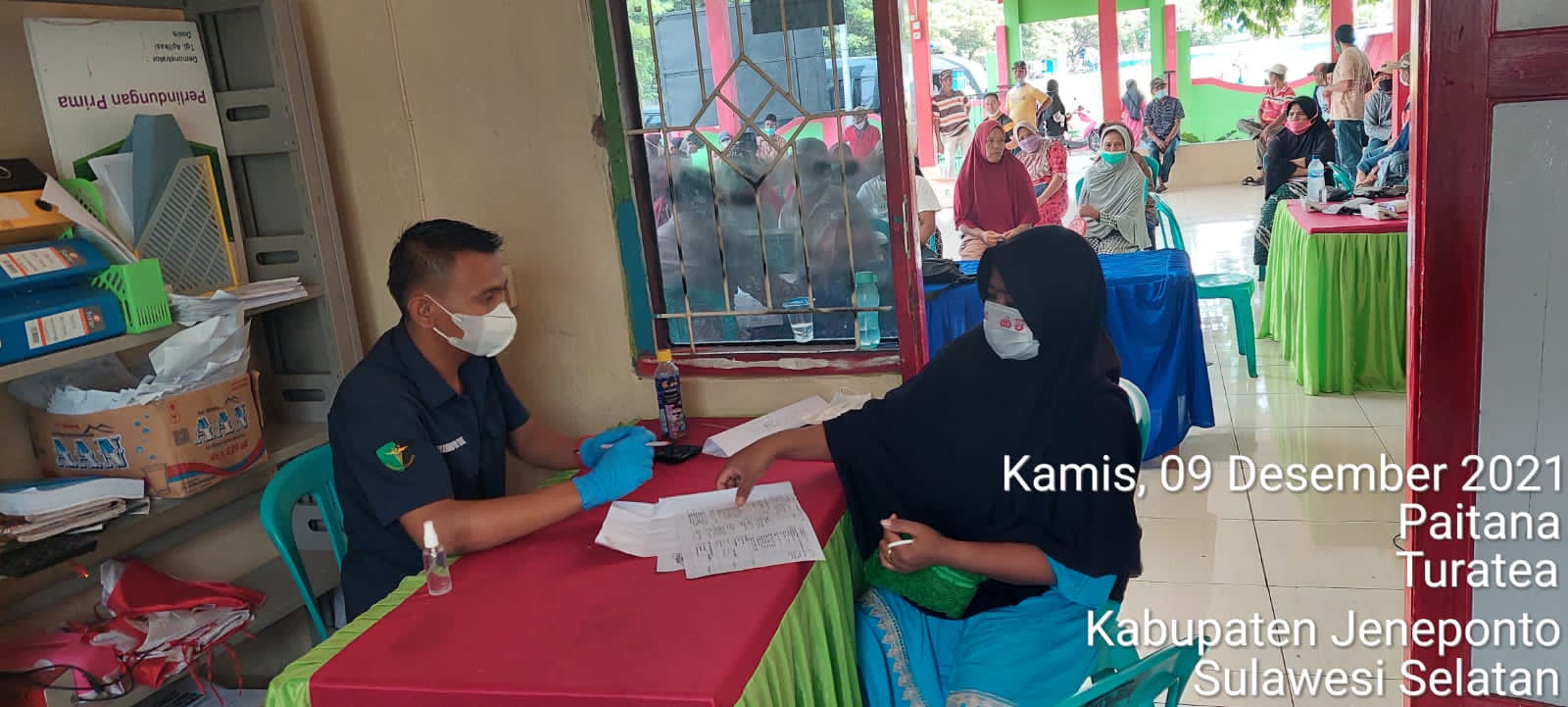 PENJURU. ID | Jeneponto – Kegiatan pemberian vaksin bagi warga masyarakat desa paitana berlangsung di Kantor Desa Paitana Kecamatan Turatea, Kabupaten Jeneponto, Kamis (9/12/2021)