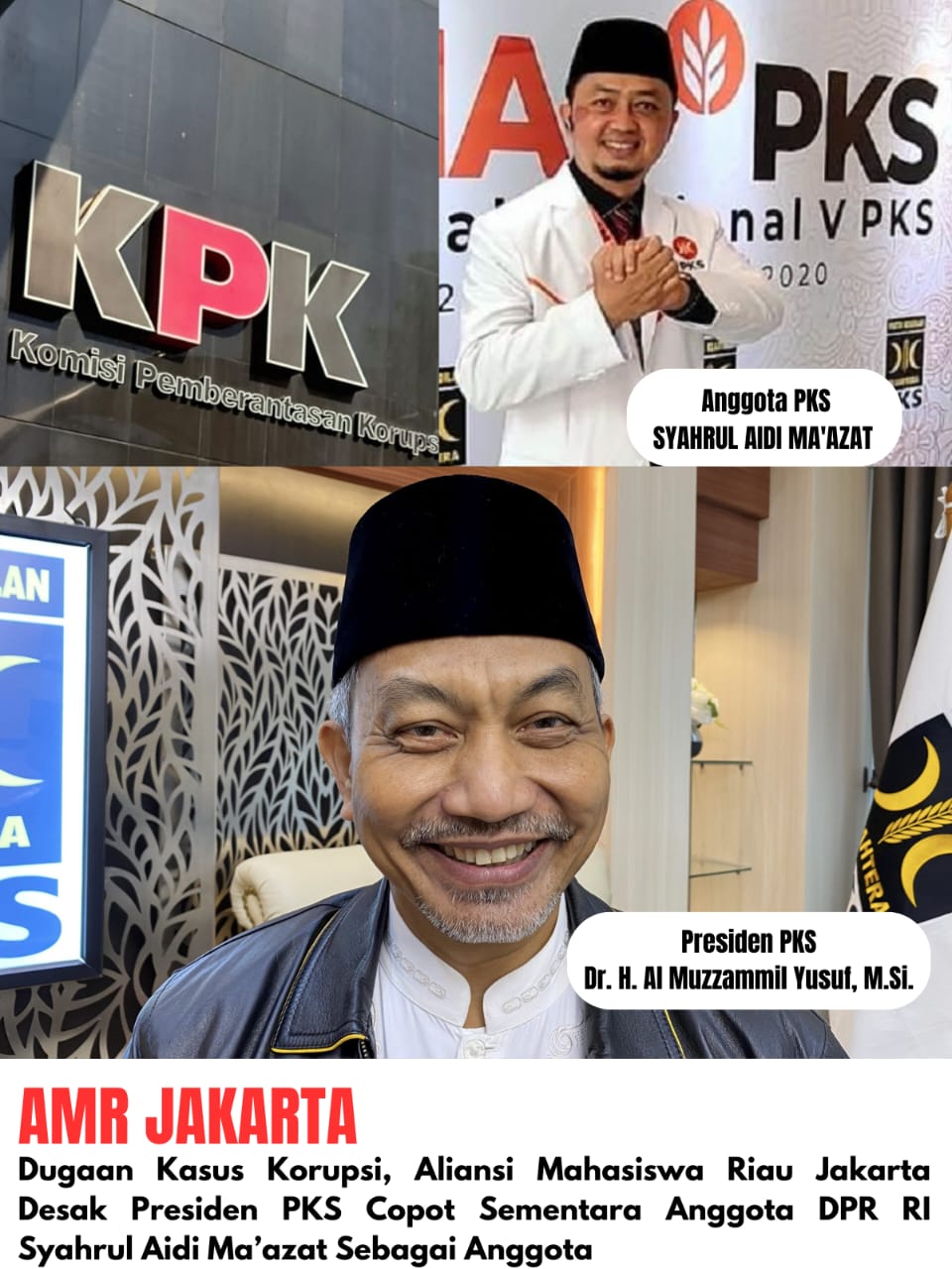Dalam laporan itu, AMR Jakarta menyebut nama Syahrul Aidi Ma’azat, Anggota DPR RI Fraksi Partai Keadilan Sejahtera (PKS) Daerah Pemilihan Riau II, yang dalam berbagai pemberitaan, pernyataan publik, serta diskursus masyarakat kerap dikaitkan dengan program bantuan APBN di wilayah Riau.
