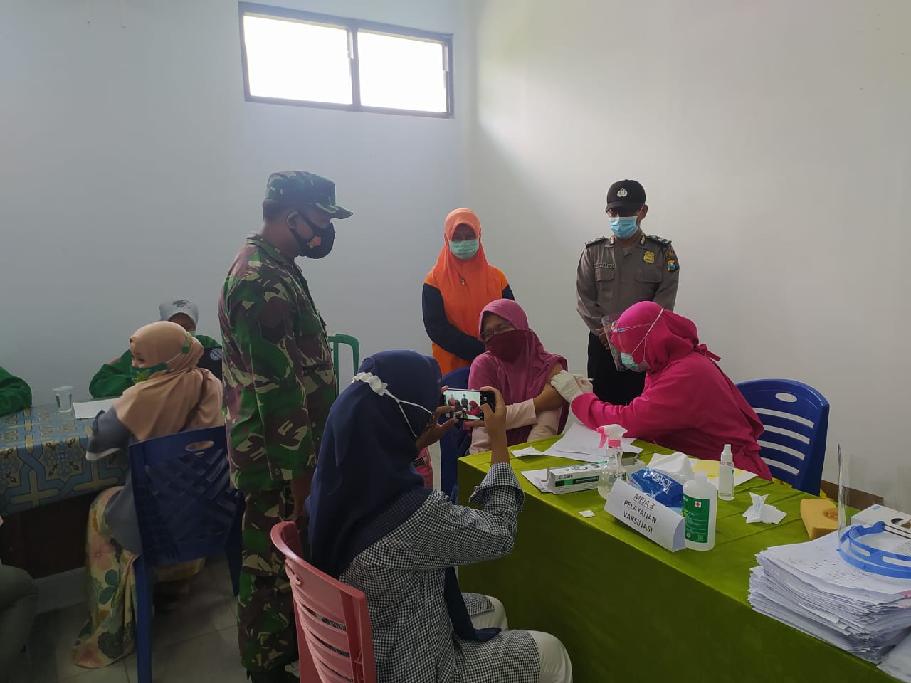 PENJURU.ID | Probolinggo – Serka Norman beserta 2 orang Babinsa Koramil 0820/17 Pakuniran, melaksanakan monitoring pelaksanaan vaksinasi tahap ll bagi pelayan publik yang ada diwilayah binaan Koramil 0820/17 Pakuniran, Kabupaten Probolinggo. Senin (29/03/2021)