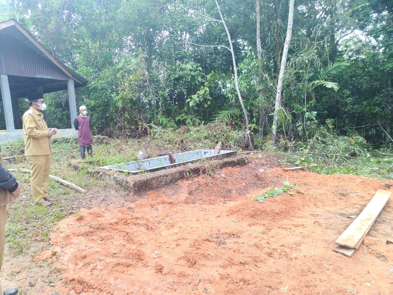 Rombongan Wakil Bupati dan para pejabat lainnya hadir dengan menerapkan protokol kesehatan (prokes) seperti memakai masker, mencuci tangan pakai sabun dengan air mengalir atau dengan hand sanitizer, menjaga jarak dan rombongan para PNS juga datang bergantian dengan menerapkan prokes.