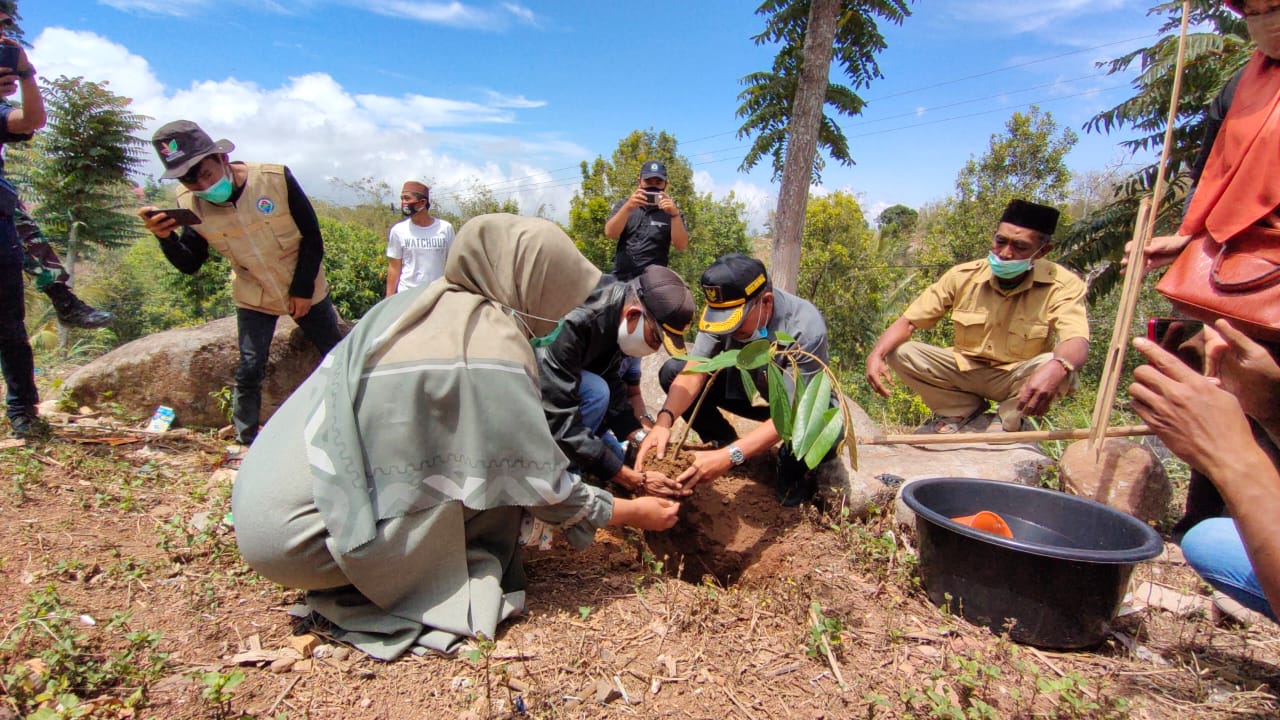 PENJURU. ID | Jeneponto – Pemerintah Kabupaten Jeneponto bekerjasama dengan pemerintah provinsi sulawesi selatan melakukan penanaman ratusan pohon durian dalam rangka menghijaukan bumi dan mengurangi pemanasan global yang dilaksanakan di Desa Kassi, Kecamatan Rumbia Kabupaten Jeneponto, Sabtu (17/09/2020)
