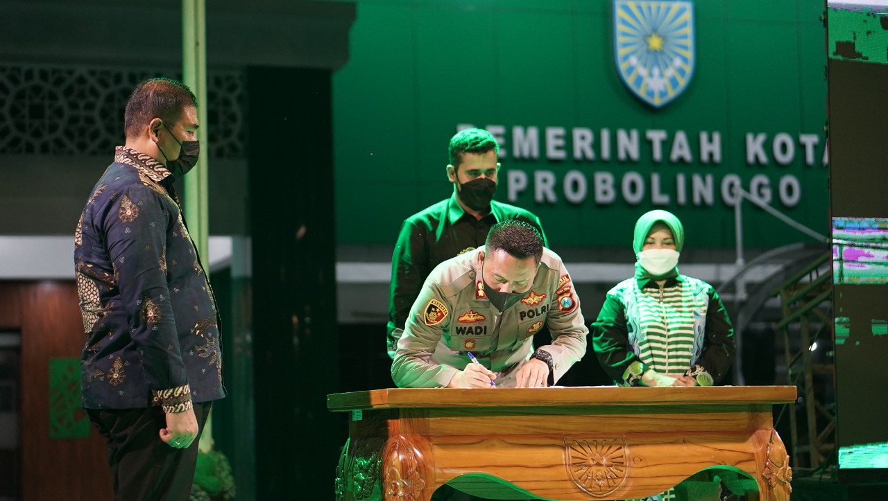 “Permintaan maaf Kapolda Jatim Irjen Nico Afinta, tidak bisa hadir karena ada kegiatan yang tidak bisa diwakili. Memerintahkan untuk menghadiri serah terima kantor Polsub Sektor Kanigaran. Kami harap Kapolres Probolinggo Kota dan anggotanya bisa memberikan kontribusi tugas pelayanan masyarakat yang maksimal di Kota Probolinggo,” ujarnya saat menyaksikan penandatanganan penyerahan aset dari Walikota Probolinggo kepada Kapolres Probolinggo Kota AKBP Wadi SA’bani.