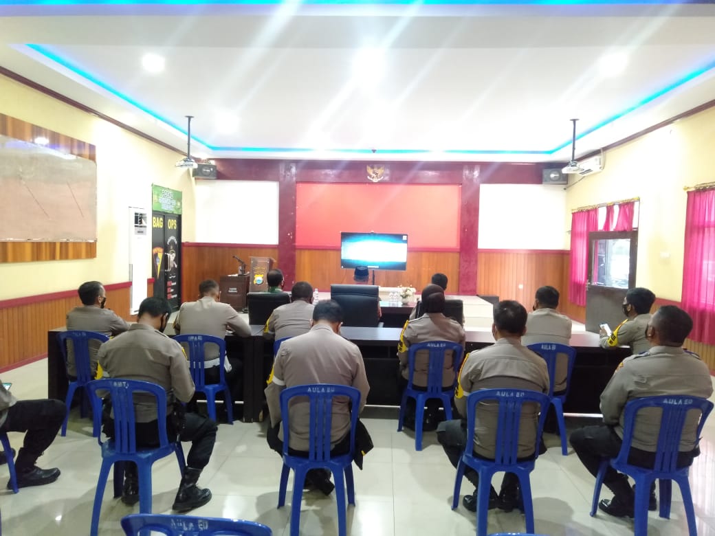 Kegiatan yang digelar di aula Endra Dharmalaksana Polres Gowa secara virtual turut dihadiri PJU,Kapolsek jajaran dan para operator layanan kepolisian 110 SPKT Resor Gowa.