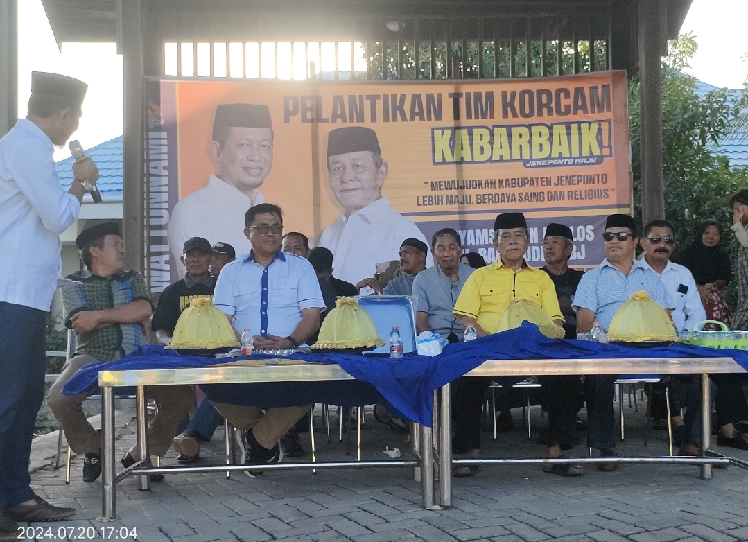 Adanya KabarBaik terkait bakal Partai Pengusung yang akan di kantonginya dikumandankan usai pelantikan dan pengukuhan tim korcam di posko pemenangan “KabarBaik” yang dipusatkan dirumah kediaman Bakal Calon Bupati, Syamsuddin Karlos berlokasi di Desa Borong Lamu, Kecamatan Arungkeke, Sabtu (20/07/2024).