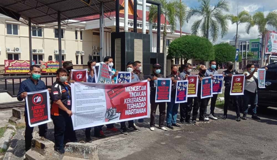 “Untuk itu, pada hari ini kami ingin menyampaikan 3 pernyataan sikap, yakni meminta Kapolres Dumai menindak pelaku kekerasan terhadap wartawan, memberantas seluruh lokasi penampungan BBM dan CPO illegal, dan terakhir memberikan jaminan perlindungan terhadap wartawan,” tegas M. Syahrul Aidi.