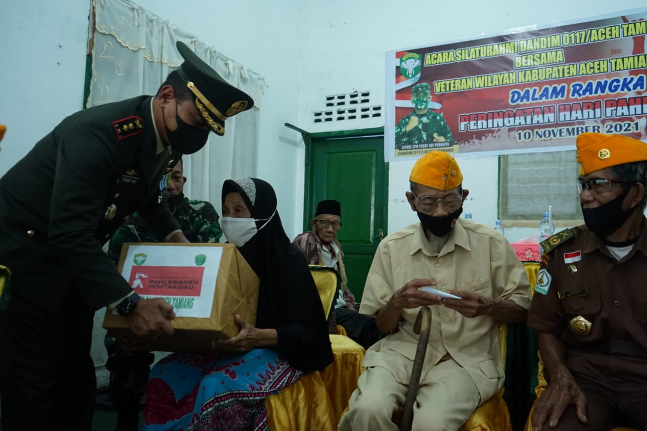 PENJURU.ID | Aceh Tamiang – Dalam rangka memperingati hari pahlawan yang jatuh pada tanggal 10 November 2021, Kodim 0117/Aceh Tamiang Mengadakan kegiatan Bakti Sosial memberikan paket sembako dan Tali asih kepada para veteran yang berada di Kabupaten Aceh Tamiang.